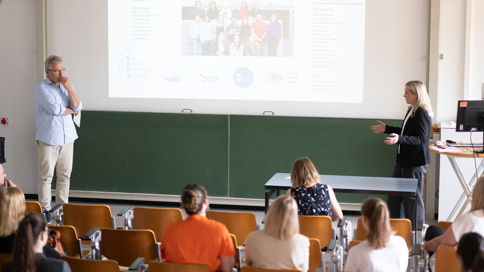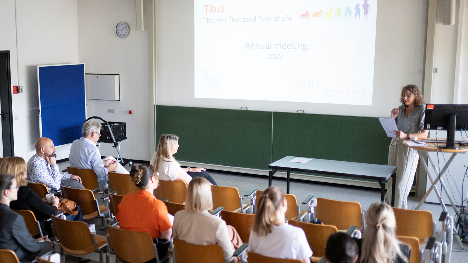 Am 24. August 2023 fand das Abschlusssymposium der ersten TITUS Förderperiode an der MHH statt. Nach der Begrüßung durch den zum Zeitpunkt amtierenden Präsidenten der MHH Prof. Dr. Michael Manns und der Sprecherin des TITUS Forschungskollegs Prof. Dr. Gesine Hansen stellten die Kollegiatinnen und Kollegiaten ihre Forschungsprojekte vor. Zudem präsentierten geladene, international renommierte Wissenschaftler:innen wie Prof. Dr. Petra Arck (UKE Hamburg), Prof. Dr. Dorothee Viemann (UK Würzburg) und Prof. Dr. Philip Henneke (UK Freiburg) ihre aktuellsten Forschungsdaten. Darüber hinaus wurde der TITUS I Research Award durch die Mitglieder des externen Advisory Boards Prof. Dr. Mathias Hornef (UK Aachen) und Frau Prof. Dr. Petra Arck (UKE Hamburg) vergeben. Wir beglückwünschen Herrn Dr. Lennart Riemann zu seinem Erfolg!
